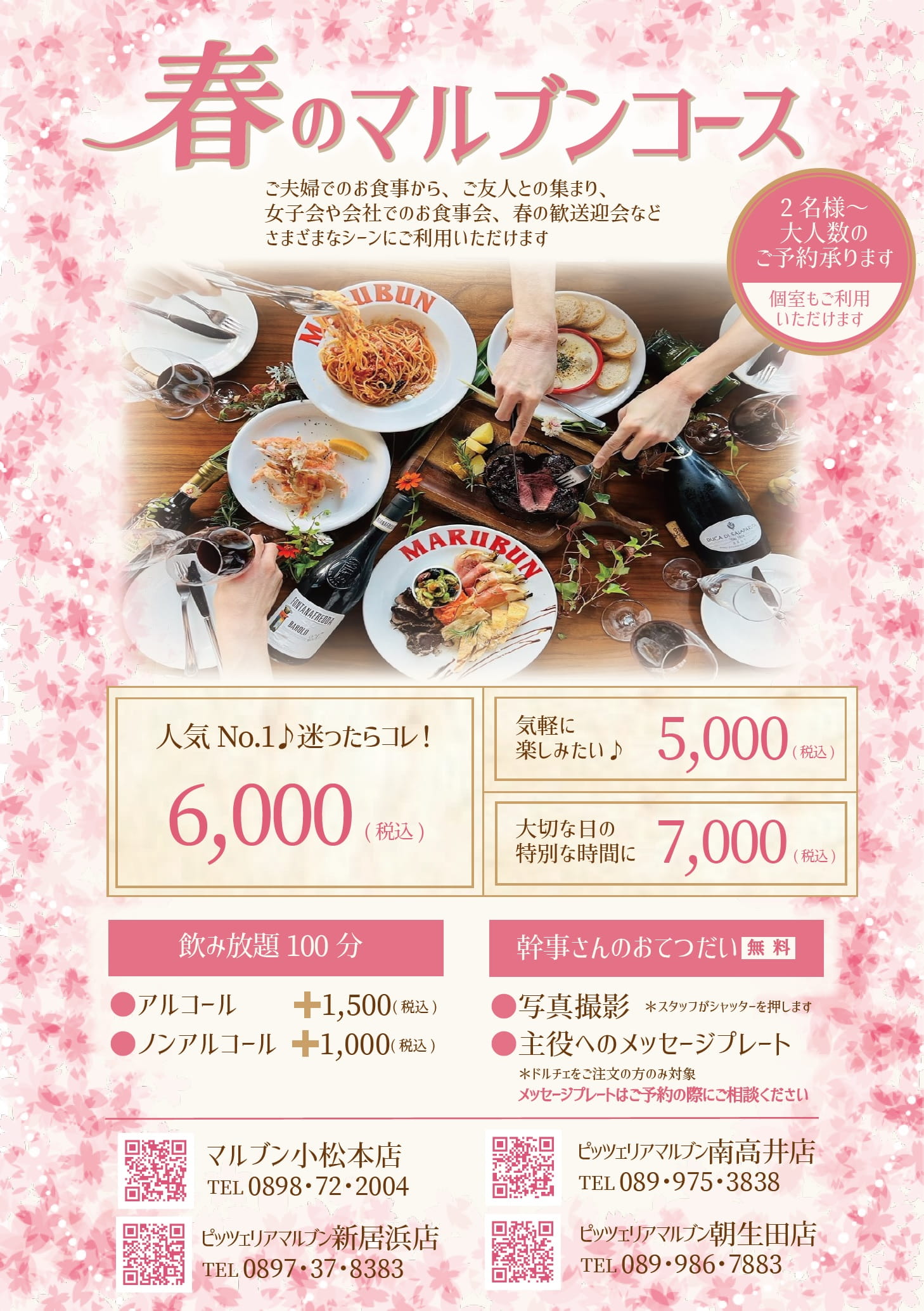 さまざまなシーンでご利用いただける「春のマルブンコース」をご用意しております。