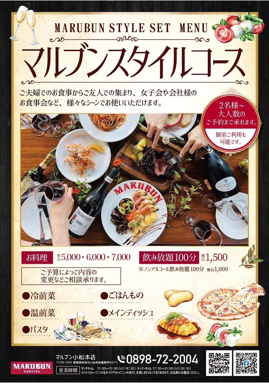 忘年会・新年会にもピッタリ!「マルブンスタイルコース」は2名様から大人数まで幅広くご利用いただけます♪