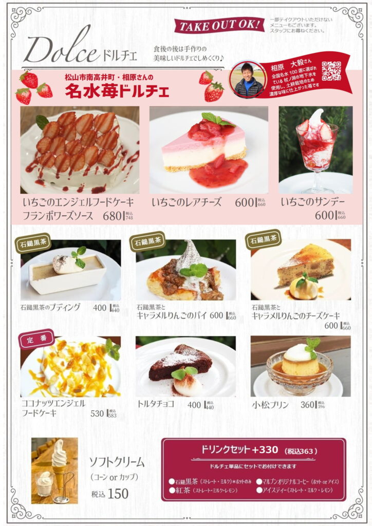 現在は食堂の時からのパスタの他、オムライスやハンバーグなどの洋食を中心としたイタリア料理で地元に根差したローカルレストランです。